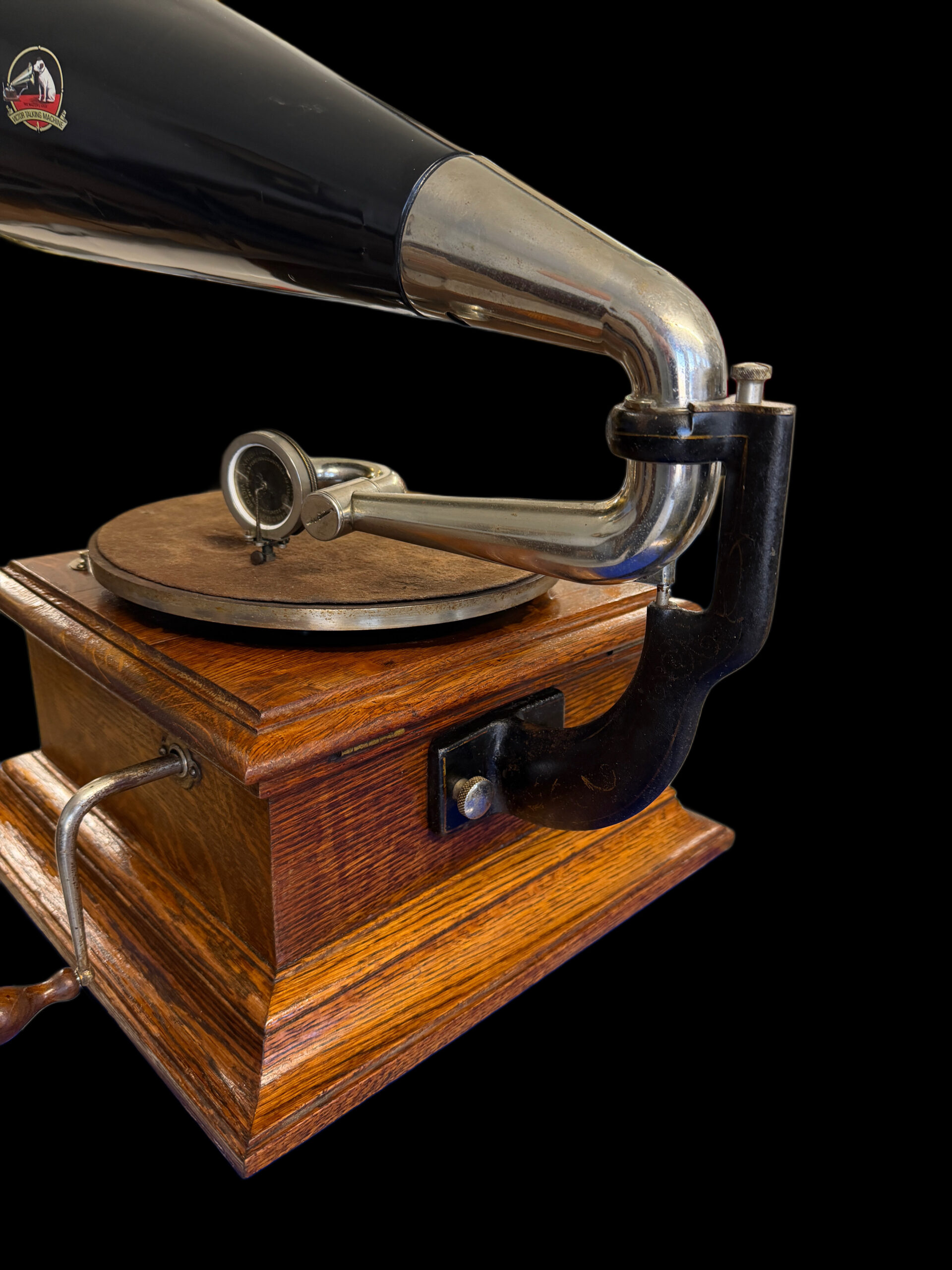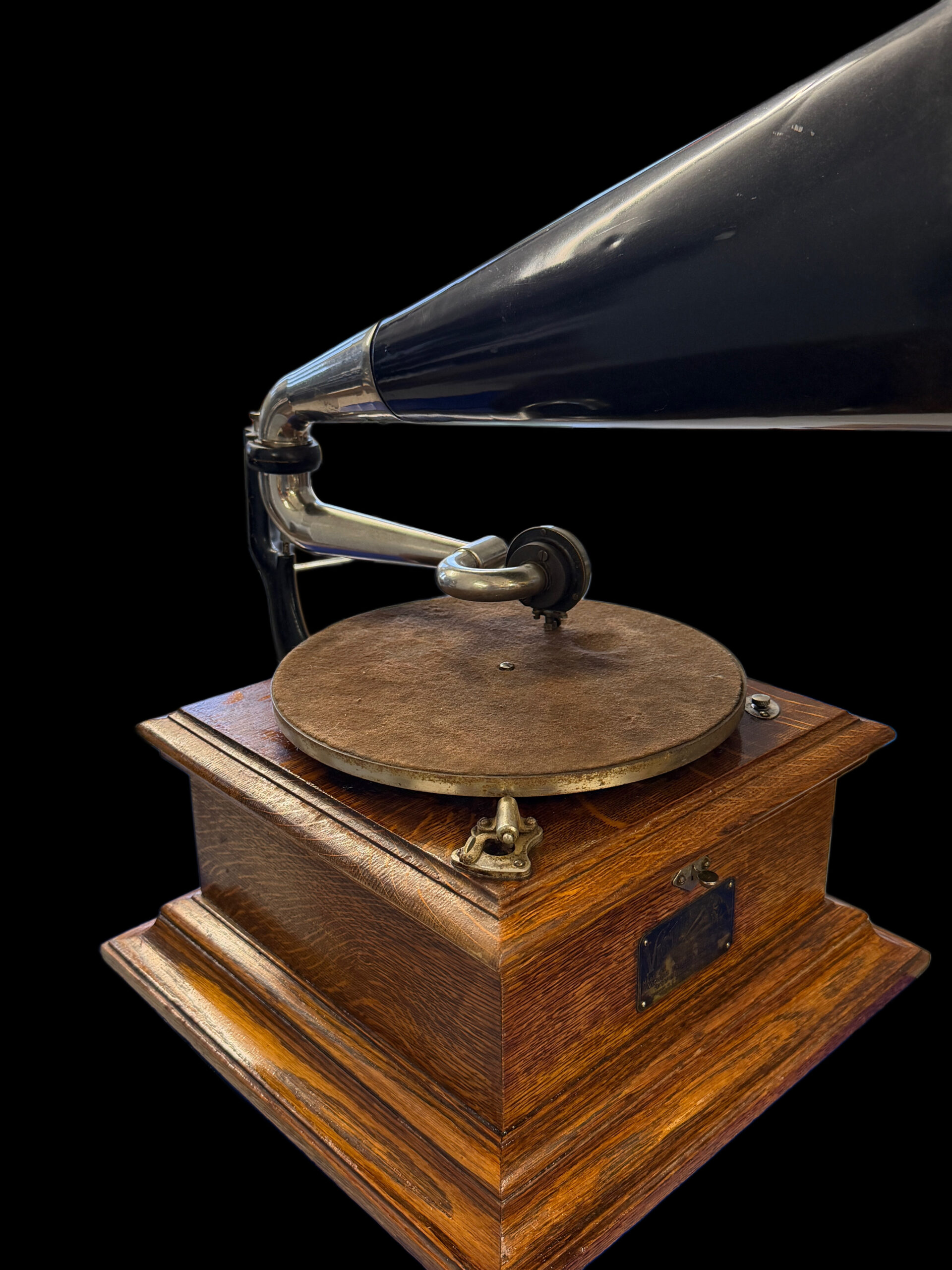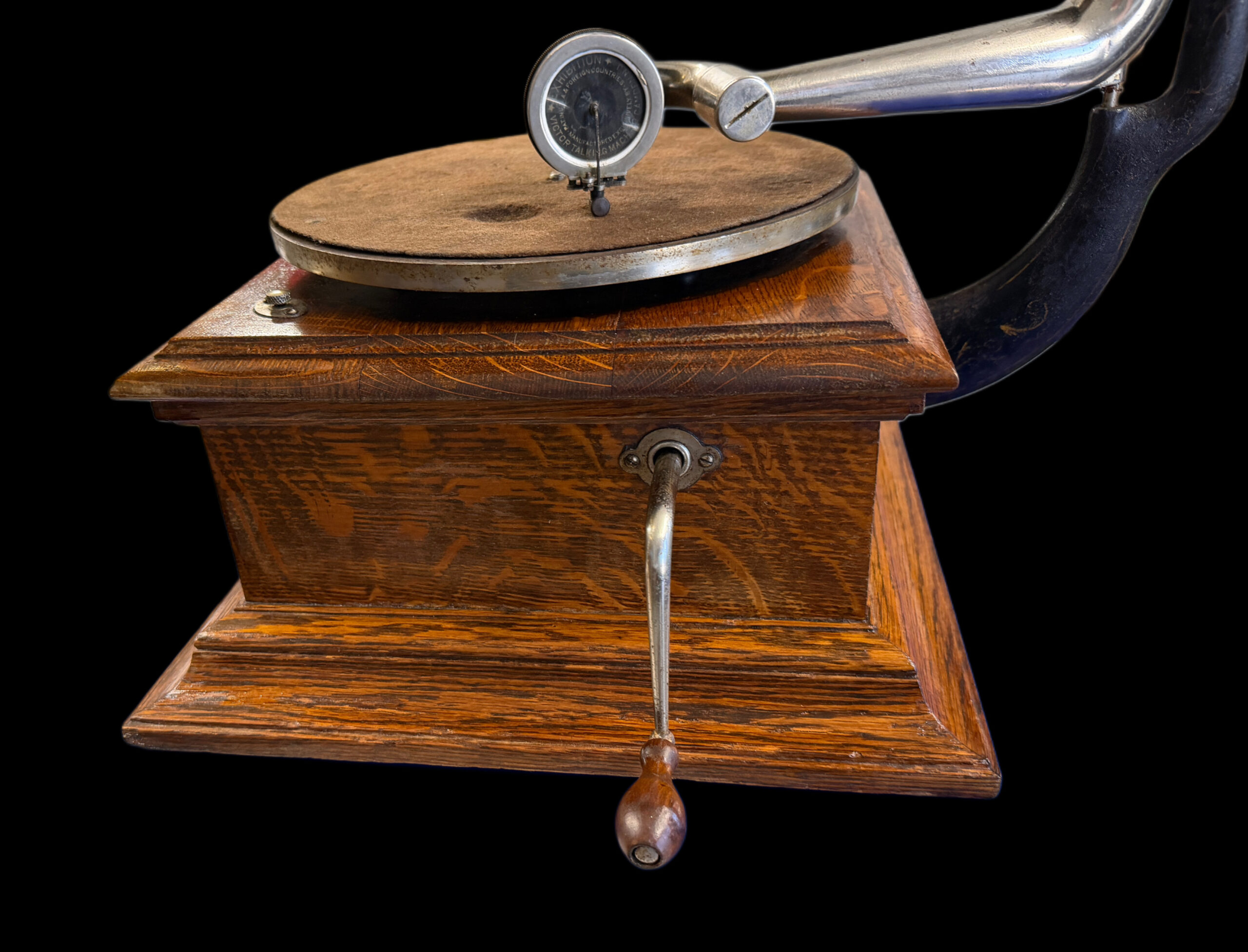 Mechanically, the phonograph is exceptional. The motor has been completely reworked, cleaned, and calibrated for smooth, reliable performance—ready for another hundred years of service. It starts easily, runs with steady power, and plays records with the rich, full, room‑filling tone that made the Victor II one of the company’s most admired early models. The sound is warm, resonant, and unmistakably “Victor.”