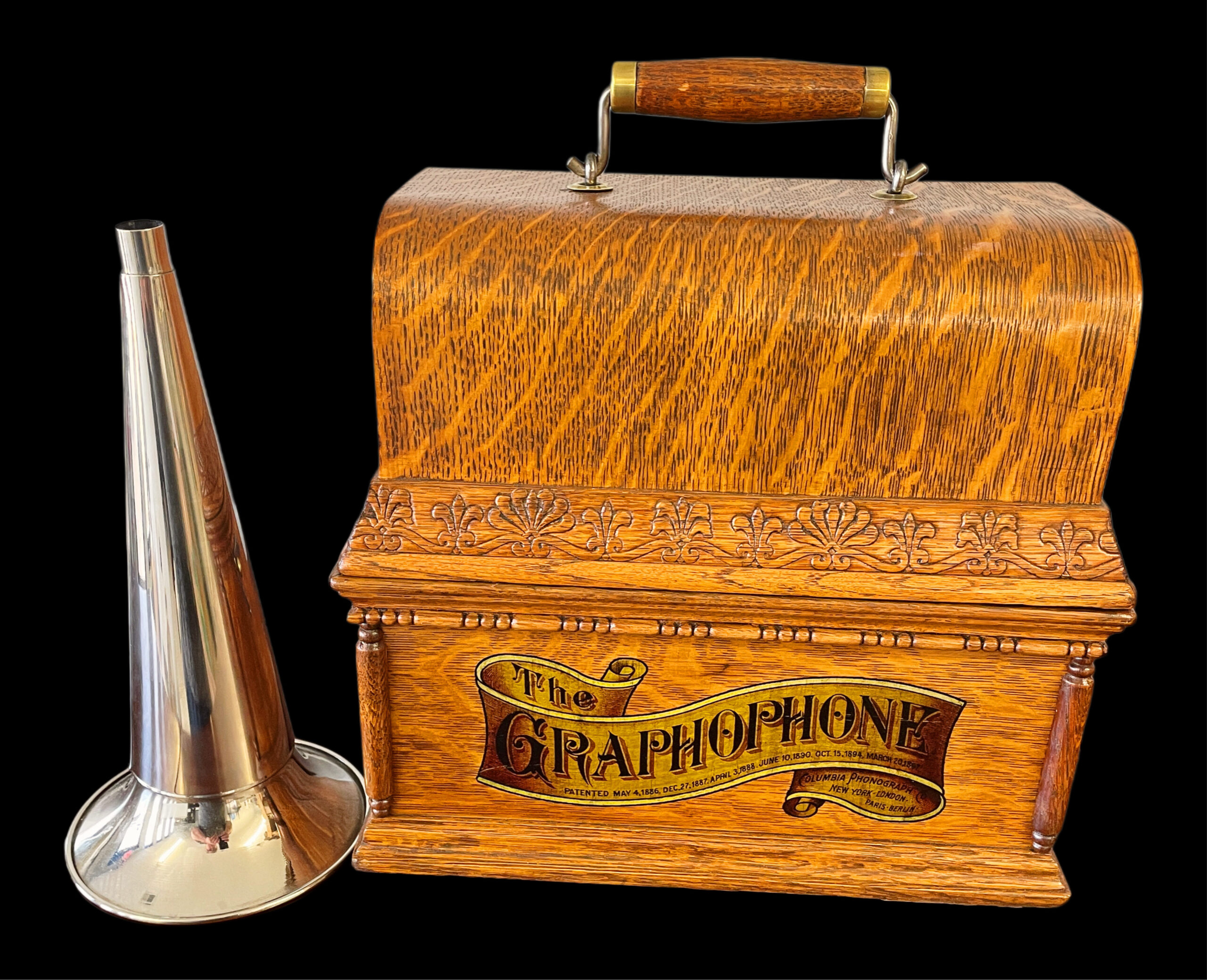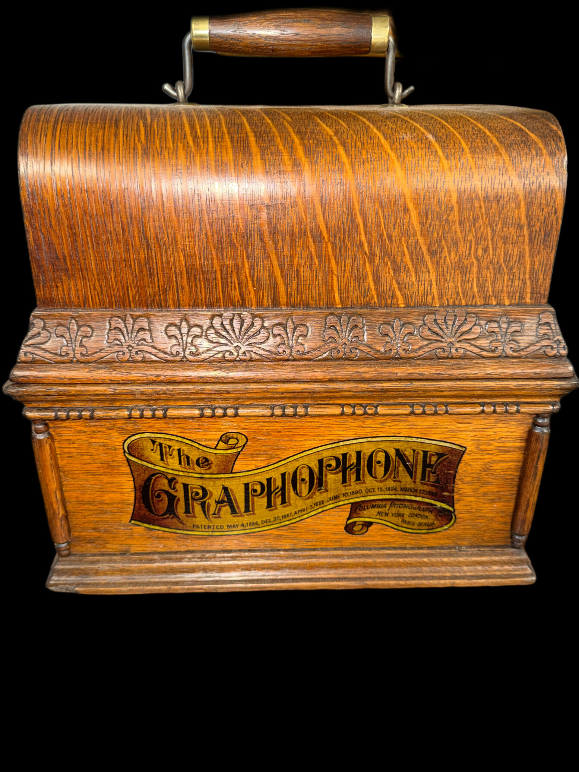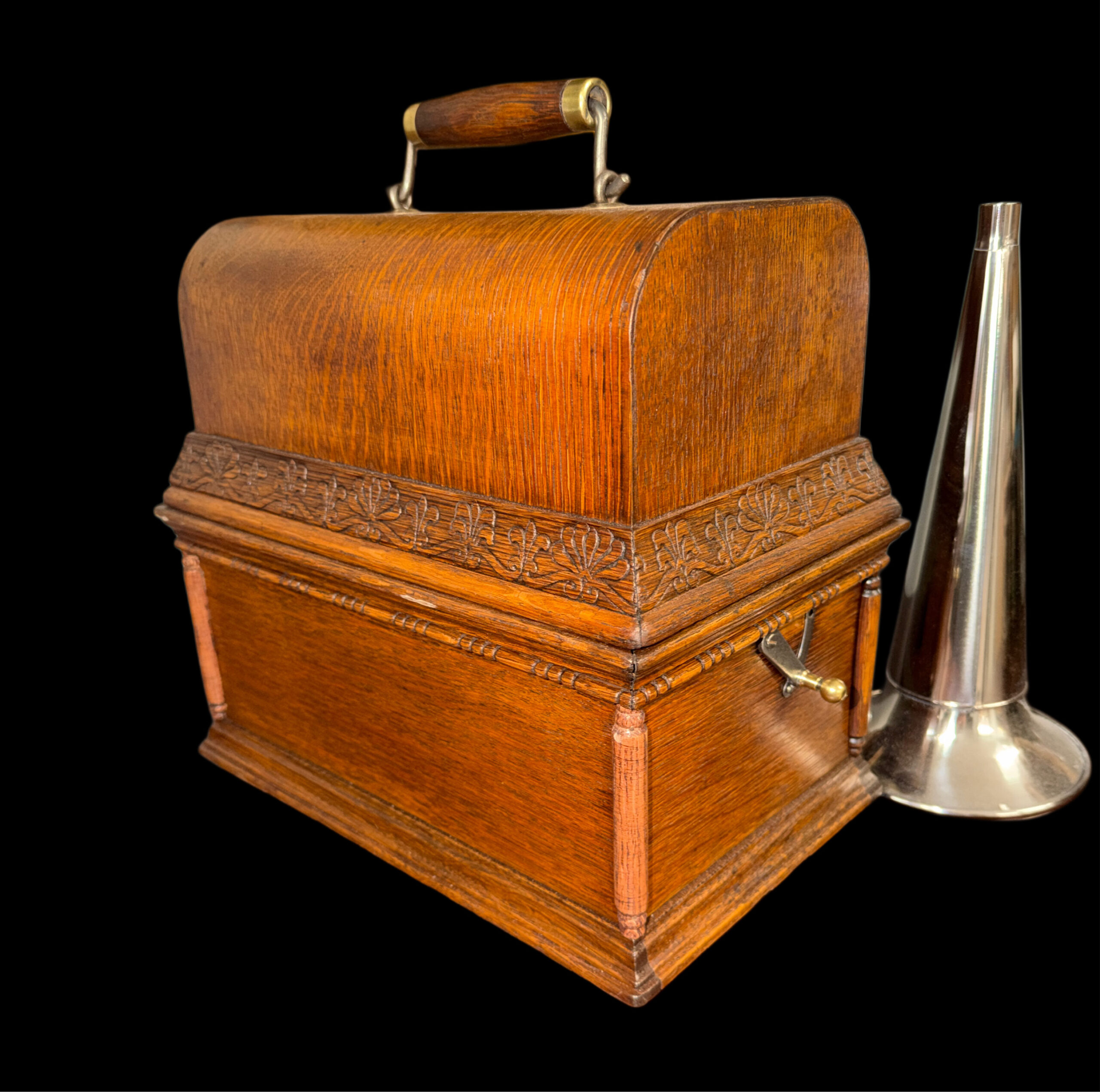 Offered here is a beautifully restored example of the Columbia AT, one of the most visually striking and mechanically refined early cylinder phonographs produced by the Columbia Phonograph Company. Preceding the more commonly encountered Columbia Model A, the AT enjoyed a short production run ending in 1898, making surviving examples notably scarce — especially in this condition.