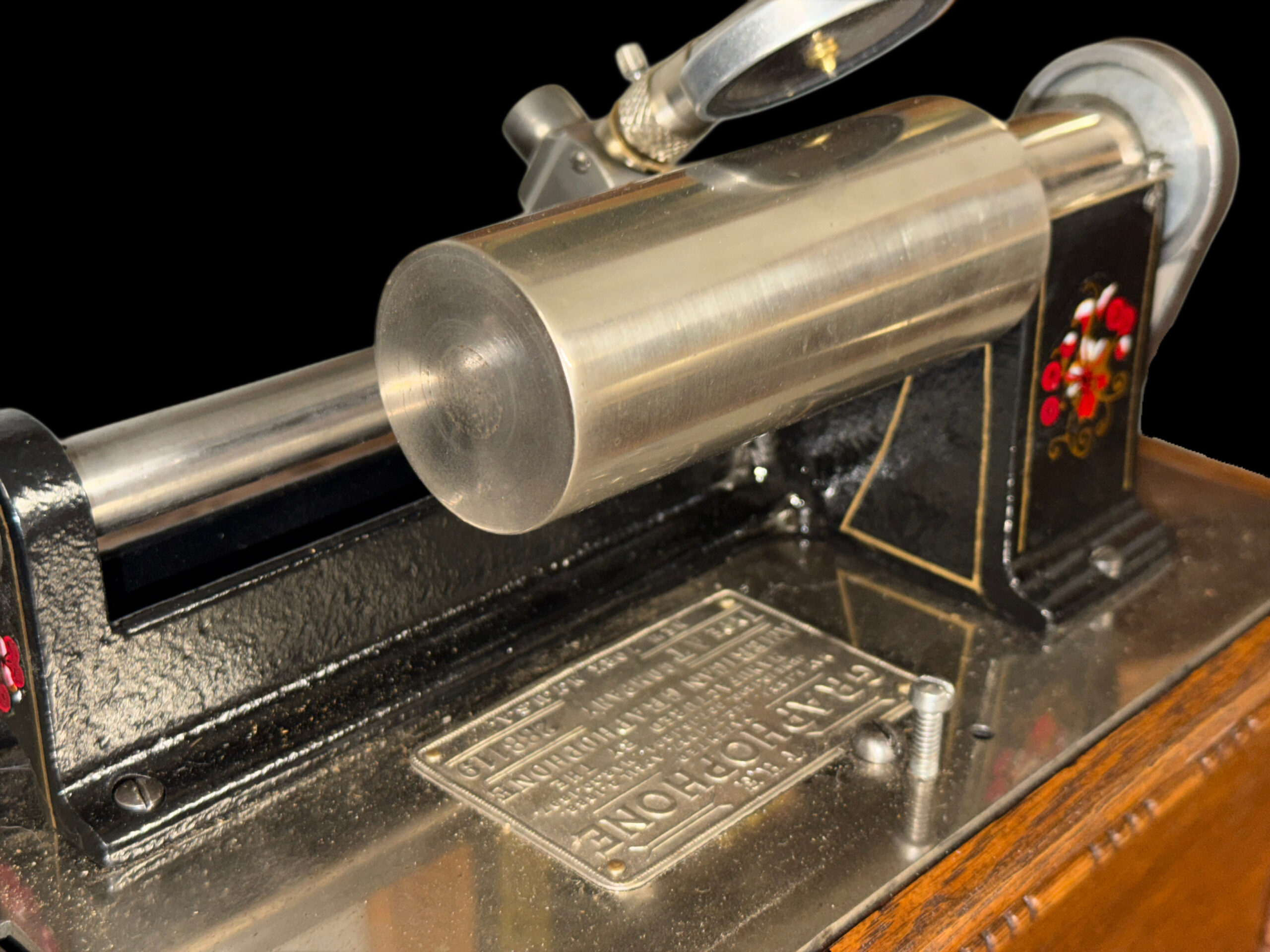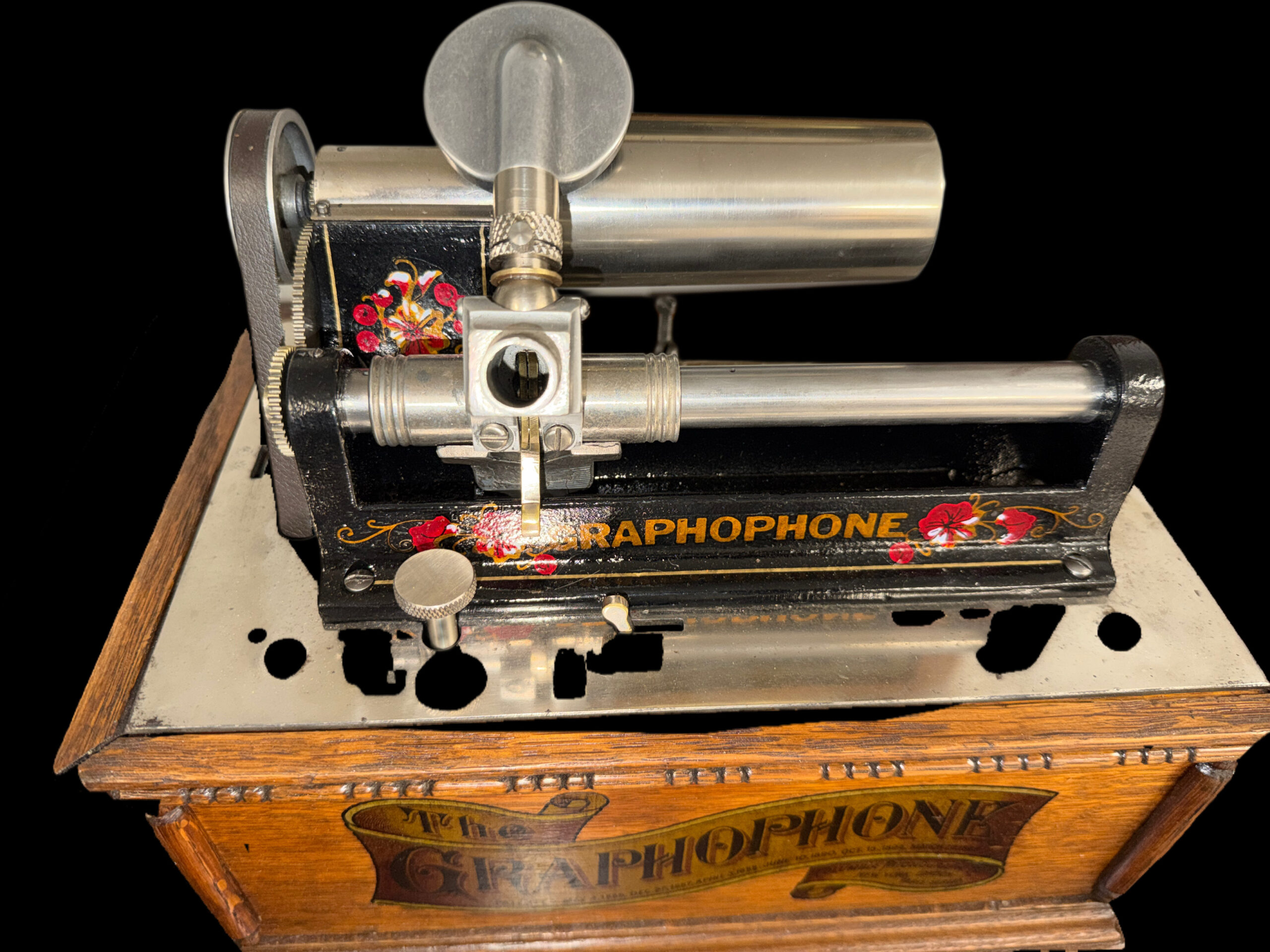The nickel-plated bedplate remains original, retaining light, age‑appropriate marks that speak to the machine’s authentic past without diminishing its presentation. Overall, the phonograph displays exceptionally well — crisp, clean, and ready for display or regular use. Columbia AT machines seldom surface in such complete and well‑preserved form. For collectors seeking an early, first‑version example with strong visual presence and fully restored functionality, this is an opportunity that rarely appears. A standout piece of late‑19th‑century sound history, ready to be enjoyed for decades to come. If you have any questions or would like additional photos or details, I’m always happy to help.
