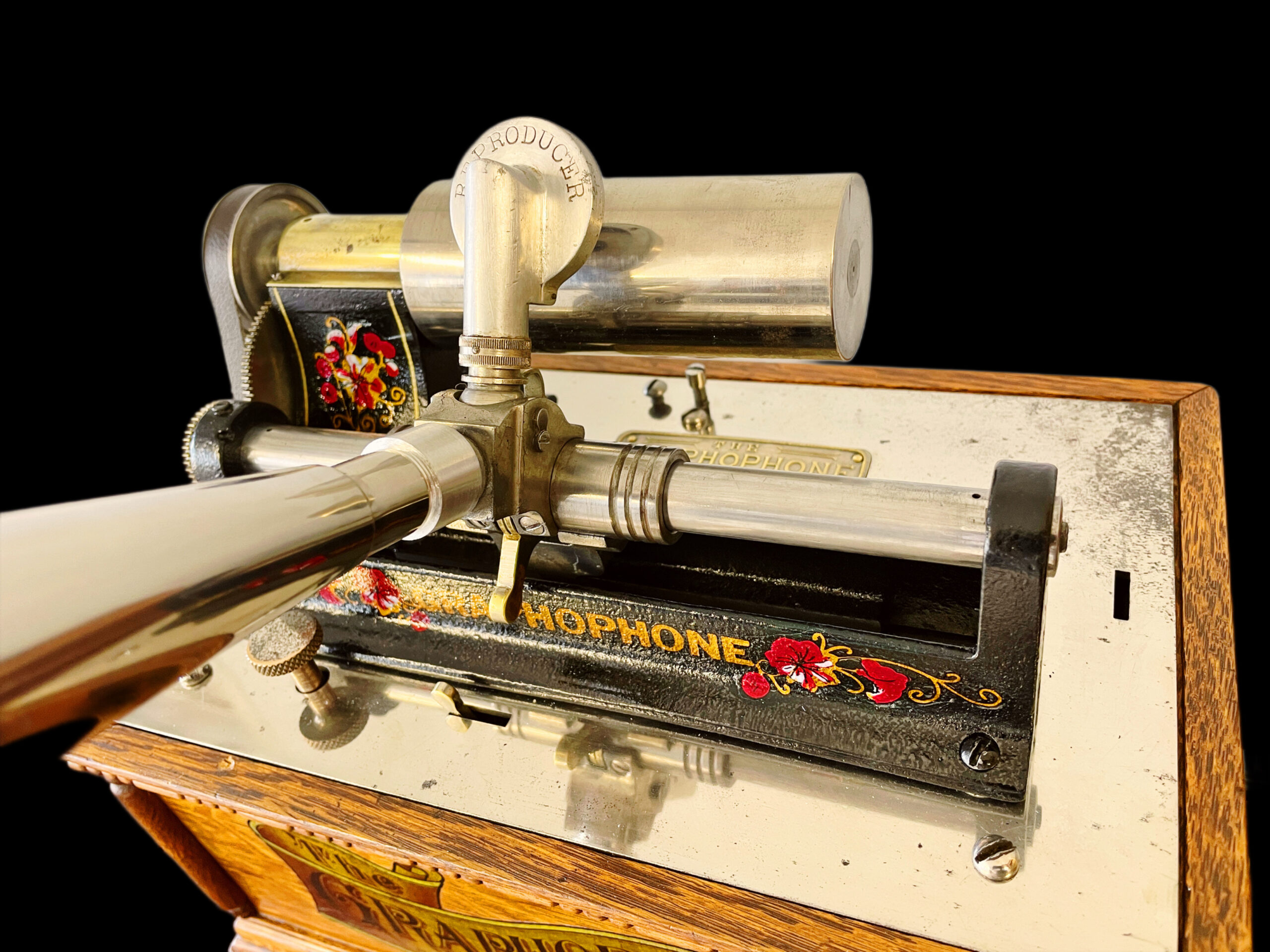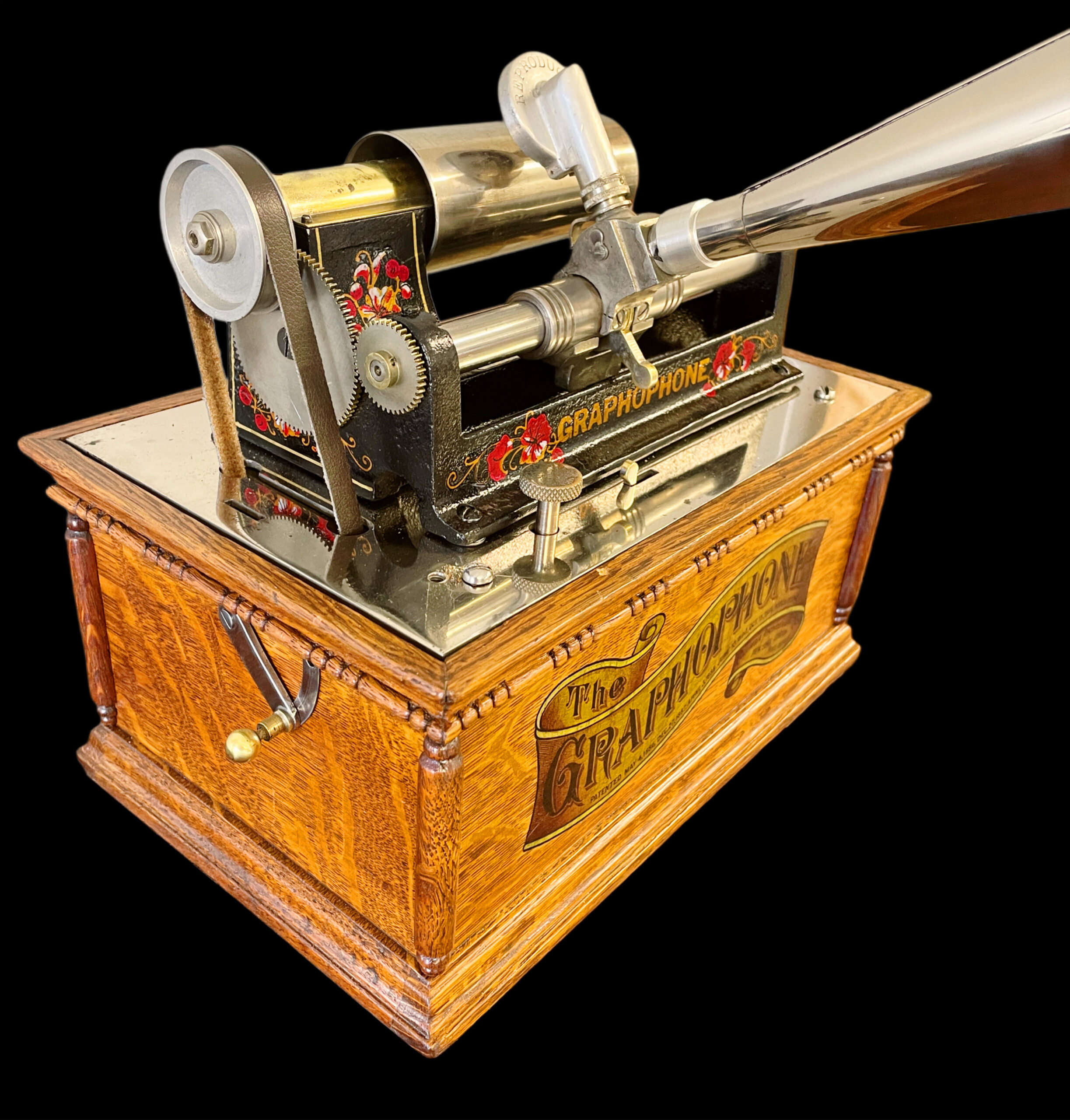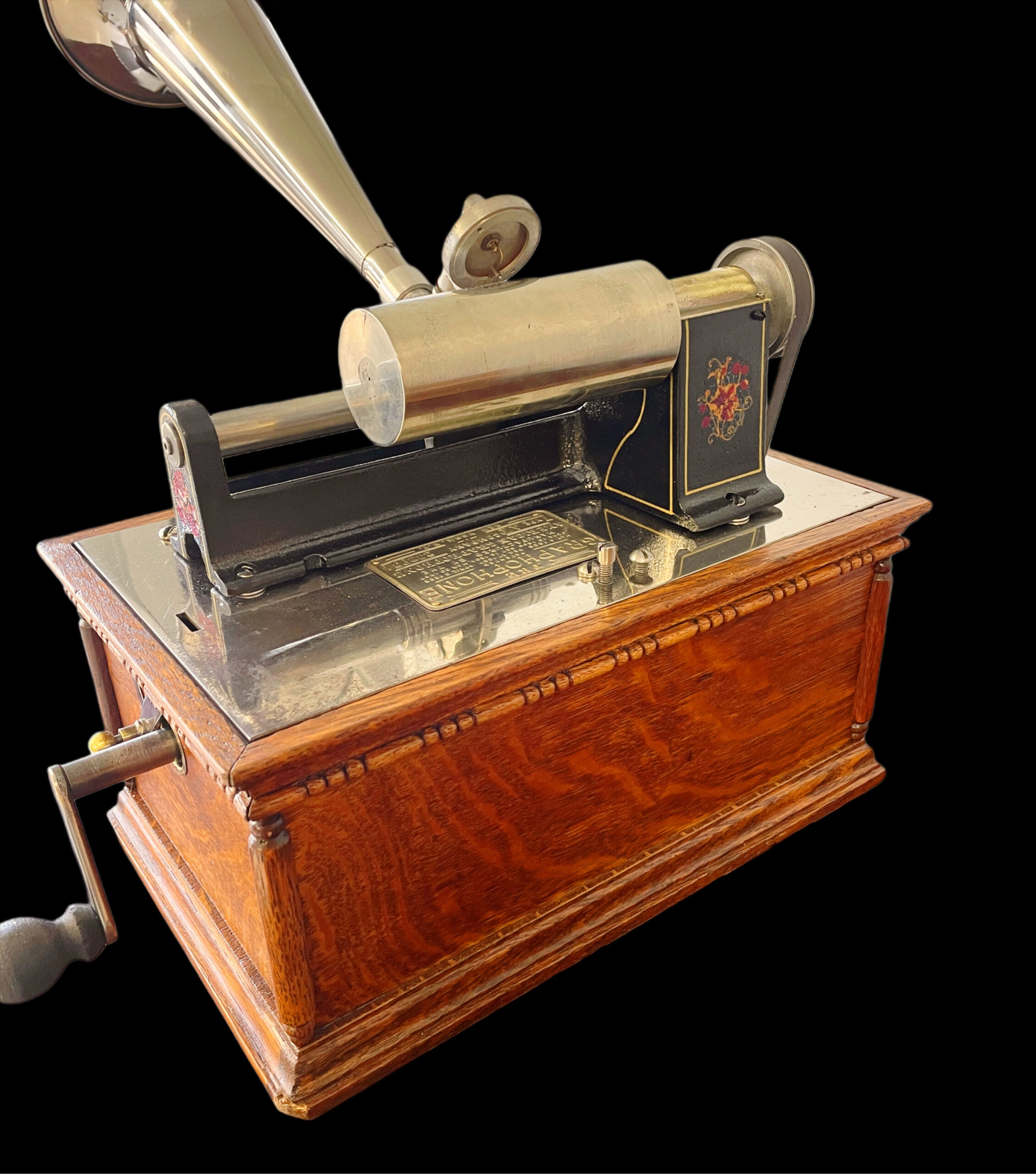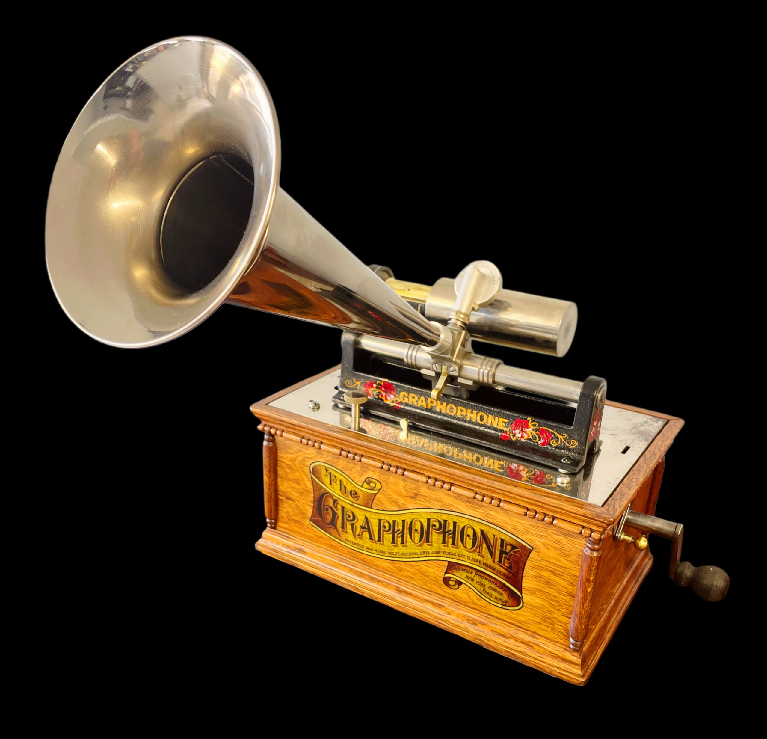 The Columbia AT model was created before the Columbia A, with its last recorded production date in 1898. This machine stands out due to its striking visual appeal, making it a rarer find compared to the A model. It boasts several significant enhancements over its predecessor, adding to its distinctiveness. Among the three versions of this model, this particular unit is identified as the first version, featuring a more intricate casing. The AT model is celebrated for its upgraded and ornate design, which includes small pillars and a decorative banner decal on the front. It also has a “pull out, slide down lid latch” that allows for safer transportation of the machine. This specific unit has been thoroughly restored, both inside and out, ensuring its durability for future generations. It comes with a reproduction nickel horn that beautifully complements the machine. Presenting itself as a pristine and fully functional phonograph, it exudes undeniable charm. While the nickel bedplate remains in its original state, it does show minor imperfections from its past, which do not detract from the overall appeal of the AT model. This phonograph is undoubtedly a remarkable addition to any collection, ready for enjoyment. As a highly sought-after item, it showcases exceptional craftsmanship. If you are in search of a distinguished first version of the AT model, this is an opportunity you won’t want to miss, as it may not come around again. If you have any questions, please don’t hesitate to reach out. Thank you for your interest.