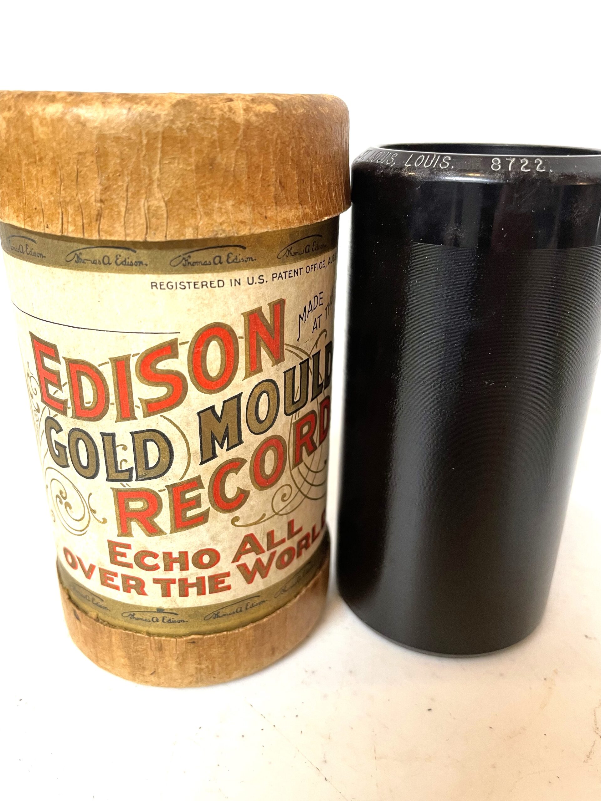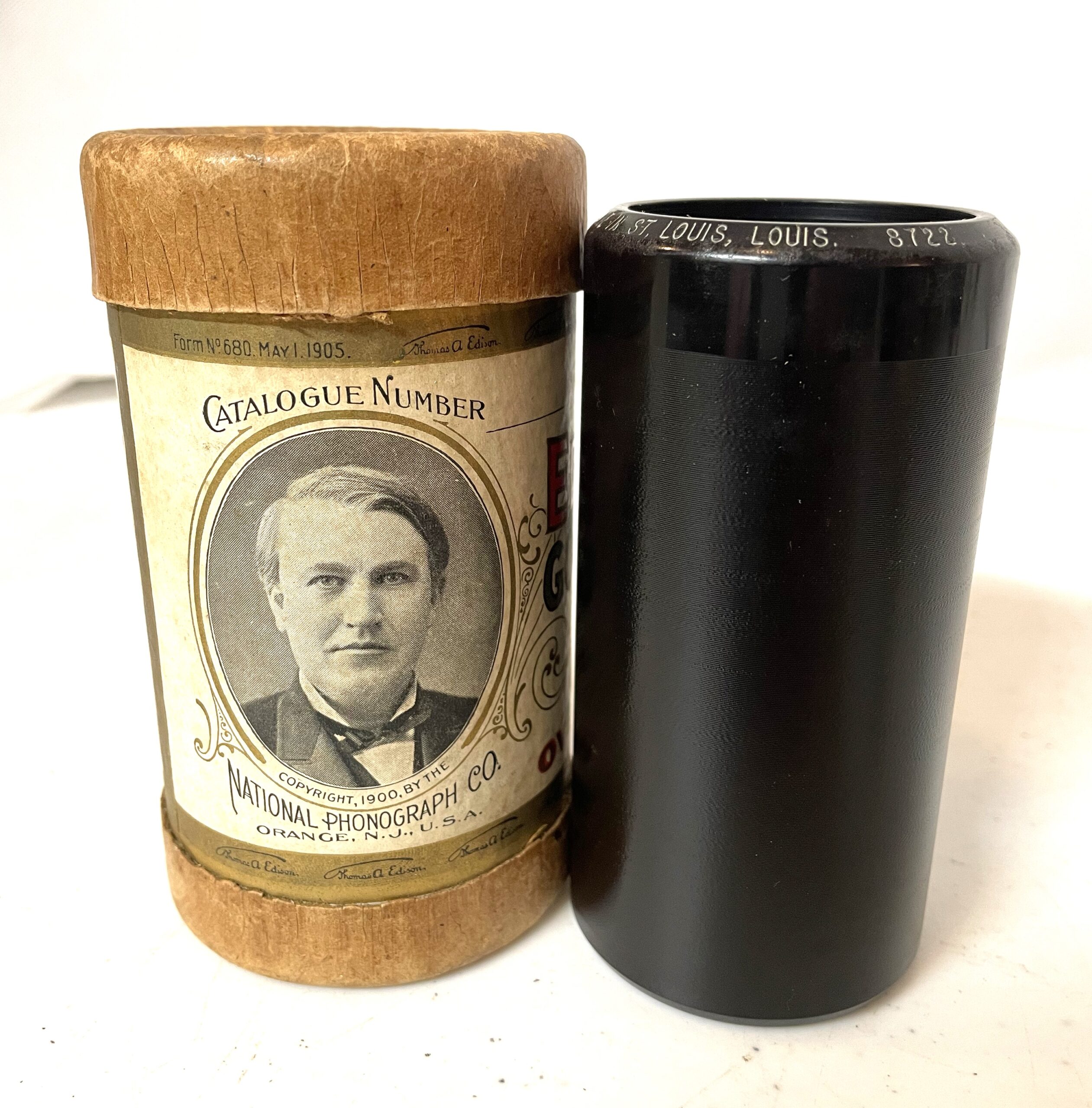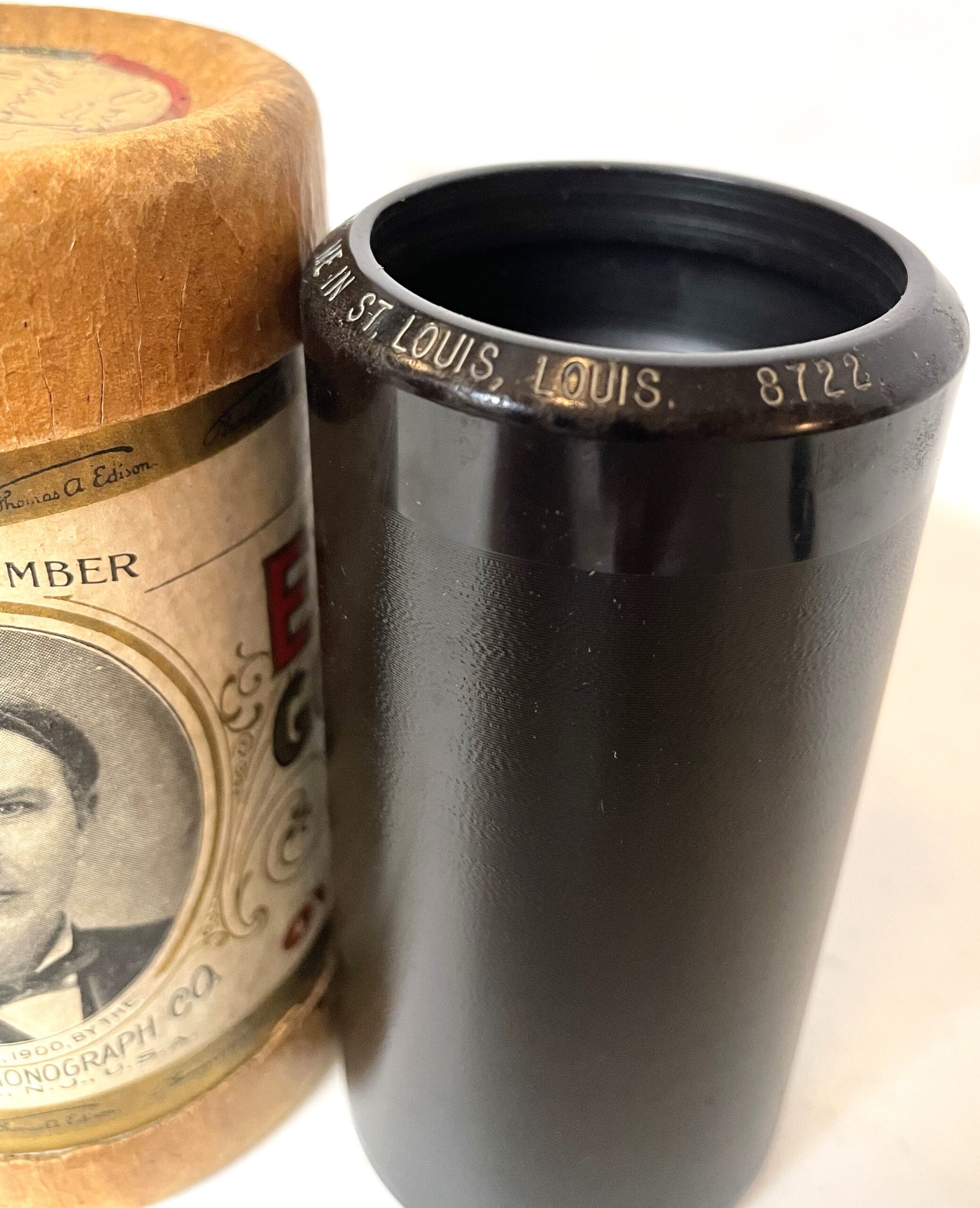 Edison 2-minute Cylinder…“Meet me in St. Louis, Louis”. The cylinder is in excellent condition. You can tell that this cylinder has been well cared for over the years! Looks like it was just purchased! It comes complete with the original cardboard tube. The Edison cylinder number is # 8722 and the artist performing the song is: “Billy Murray”. It is a popular song from 1904 which celebrated The Louisiana Exposition, also known as the St. Louis World’s Fair. Actual photo being used! RARE and hard to come across in this condition! Any questions. feel free to ask!