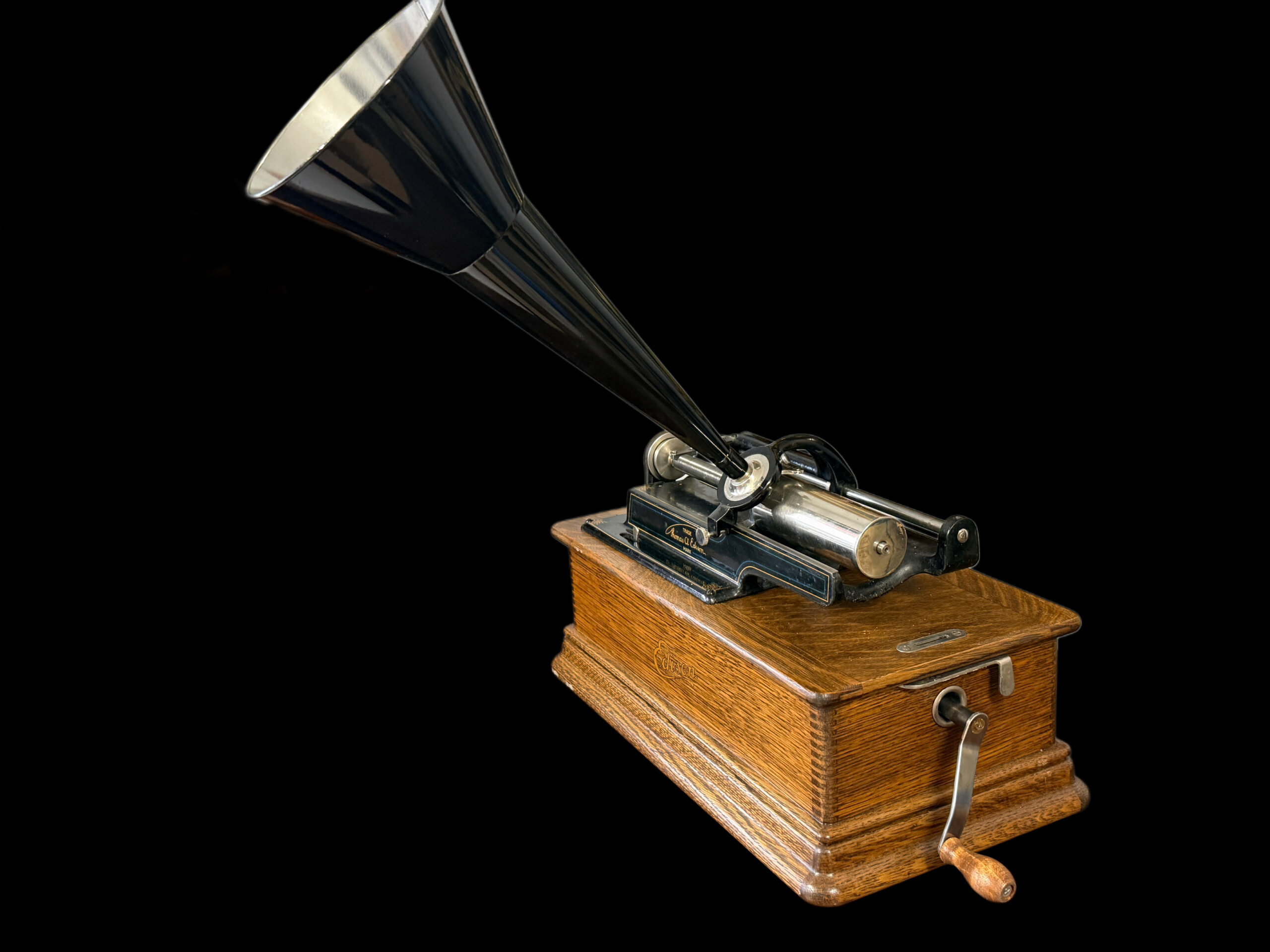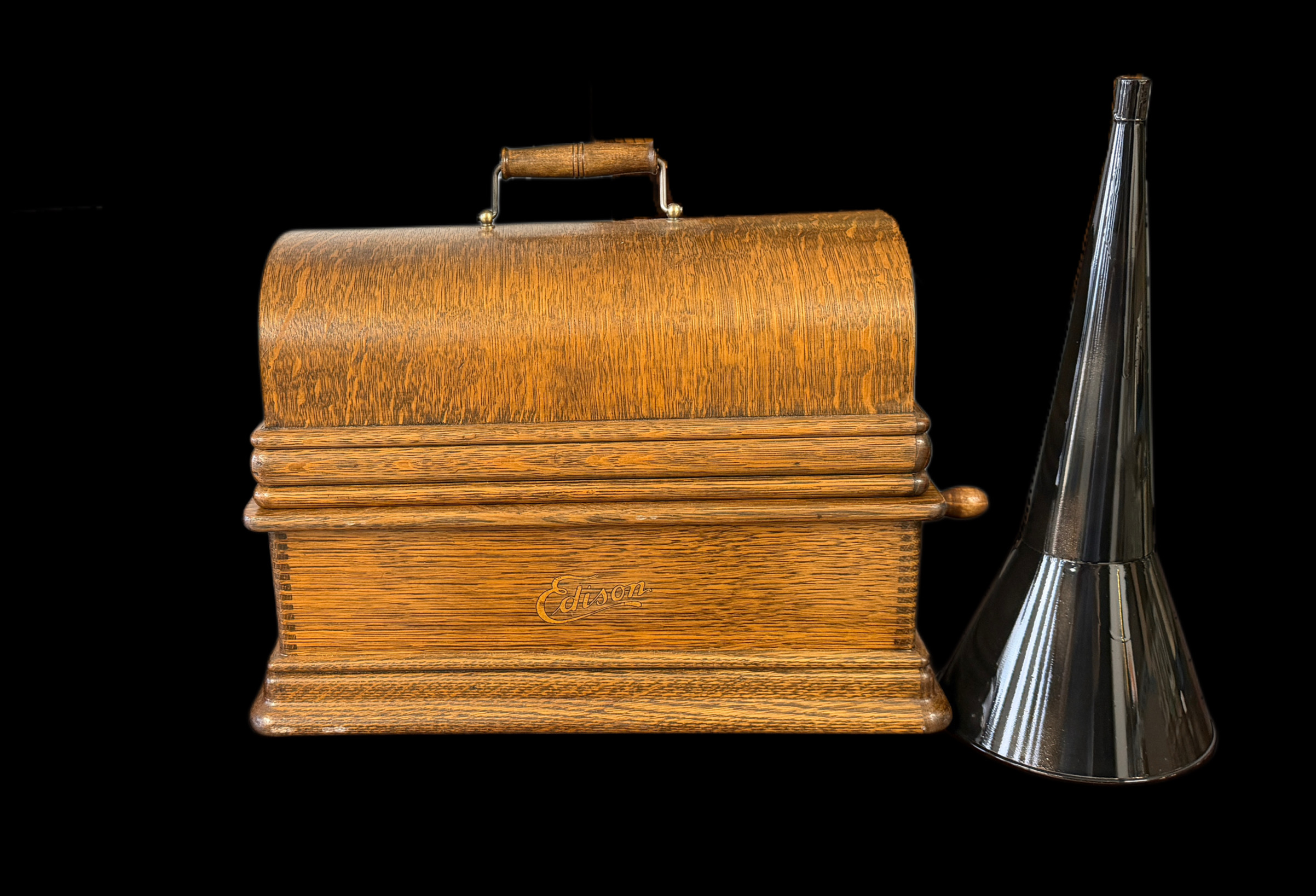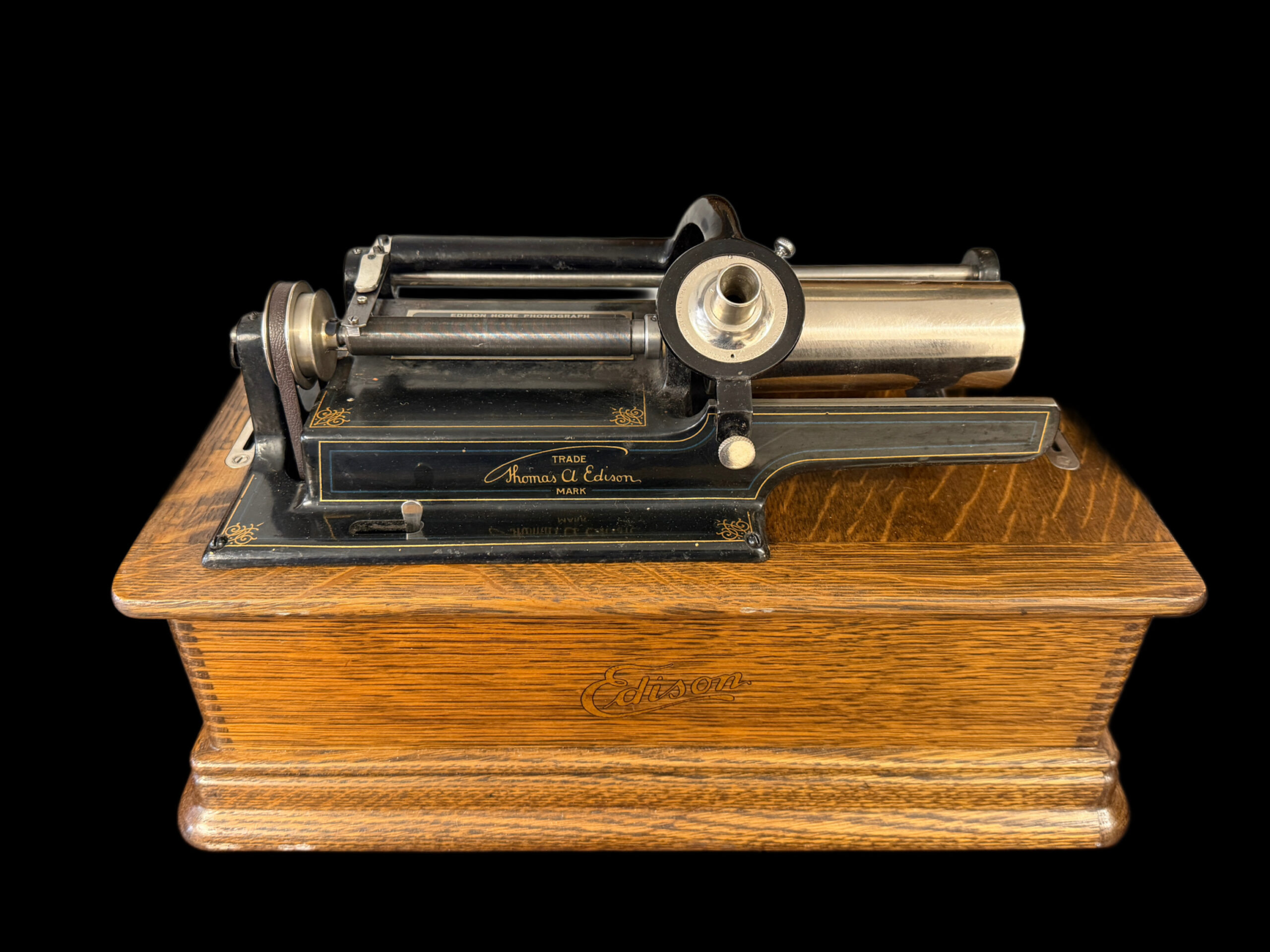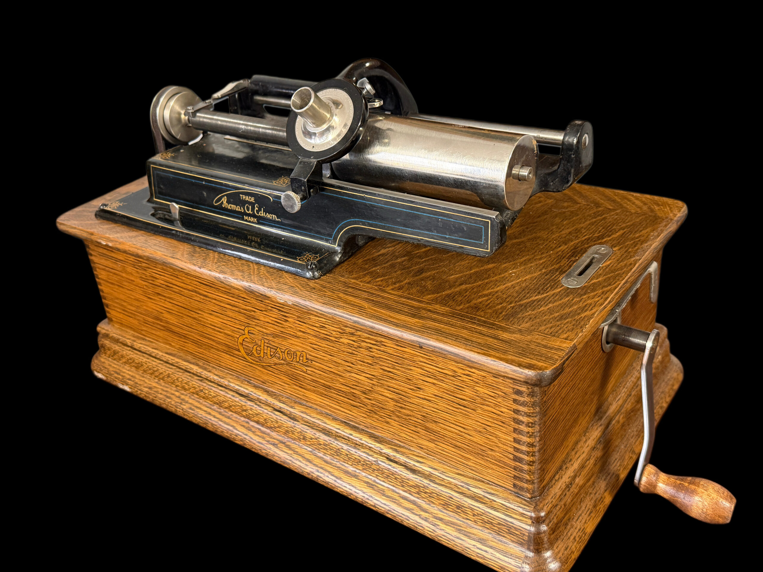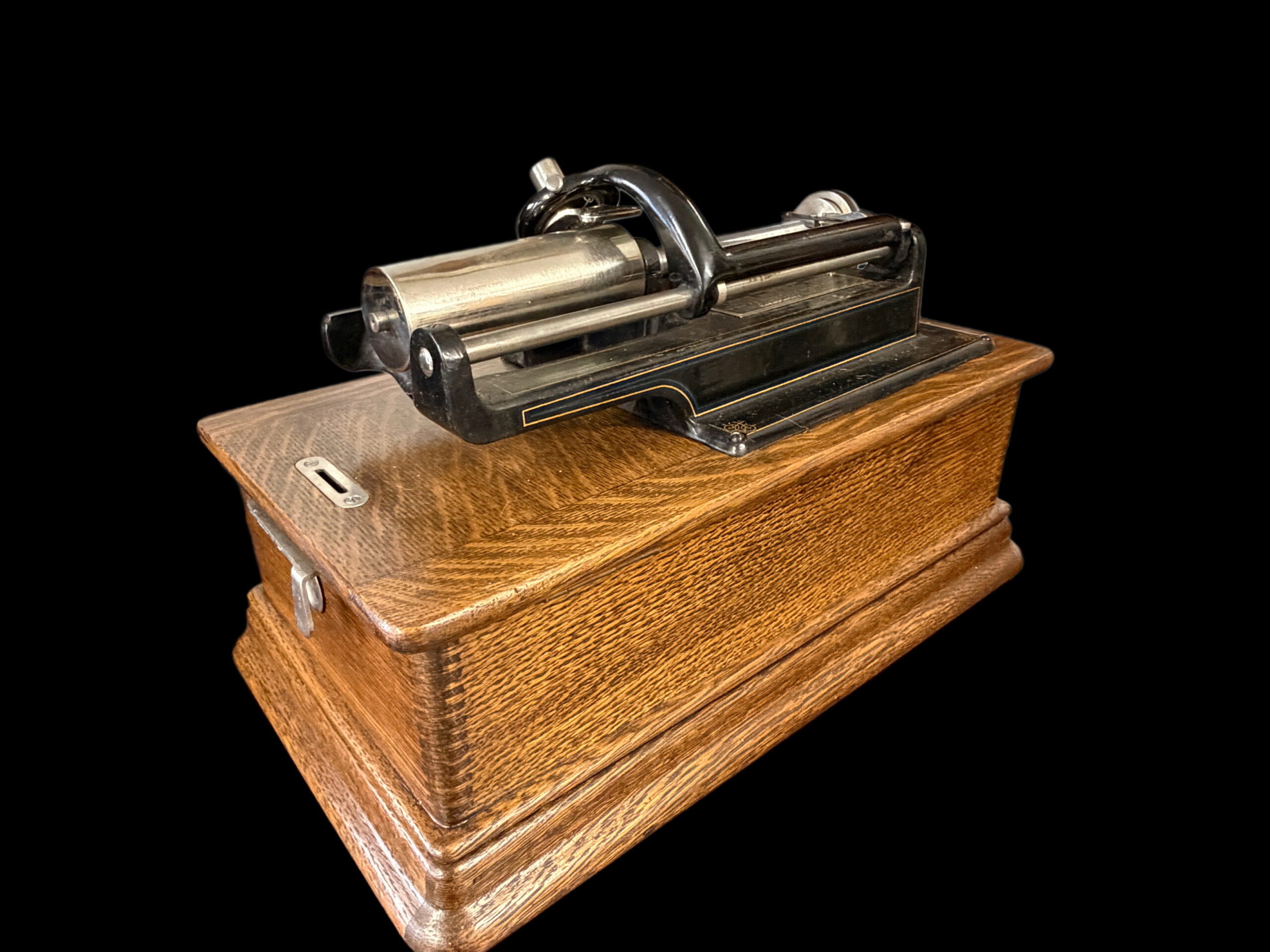 Offered here is a beautifully restored example of the Edison “Home” Model D, one of the most versatile and dependable machines produced during the golden age of cylinder phonographs. Introduced in the mid‑1900s, the Model D represented a major step forward in Edison’s lineup, engineered to play both 2‑minute black wax cylinders and the newer 4‑minute Blue Amberol records when equipped with the proper reproducer.