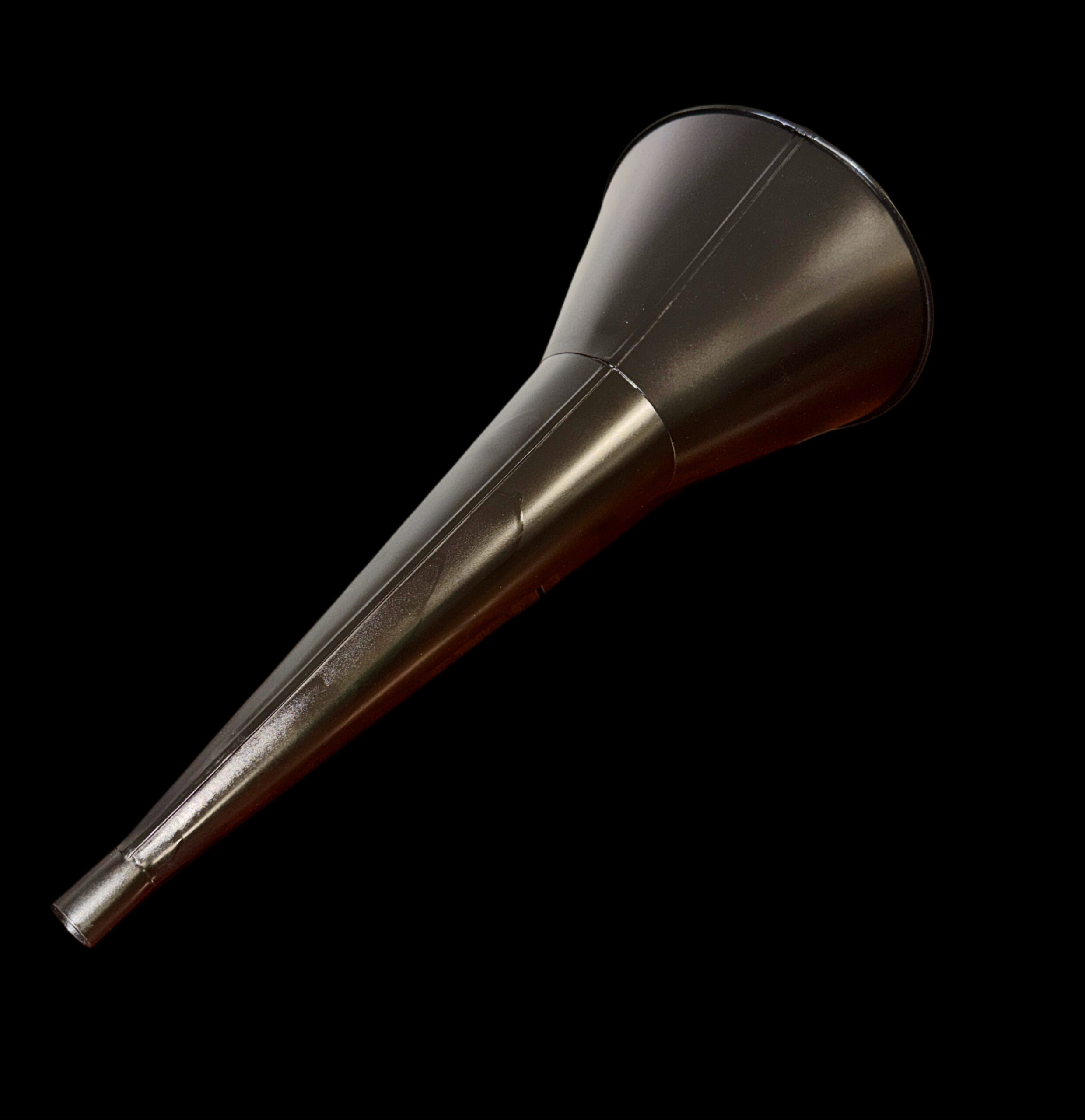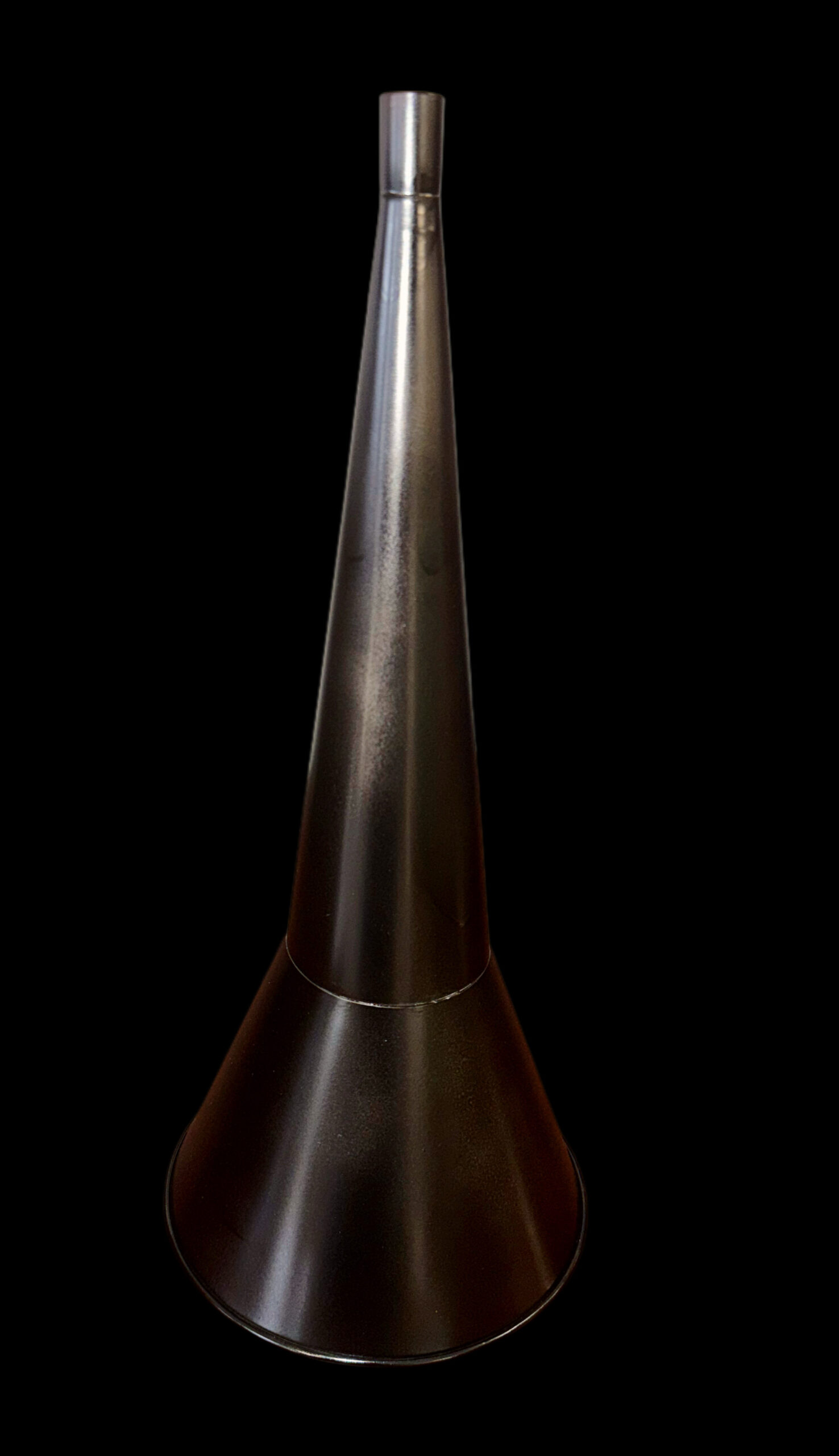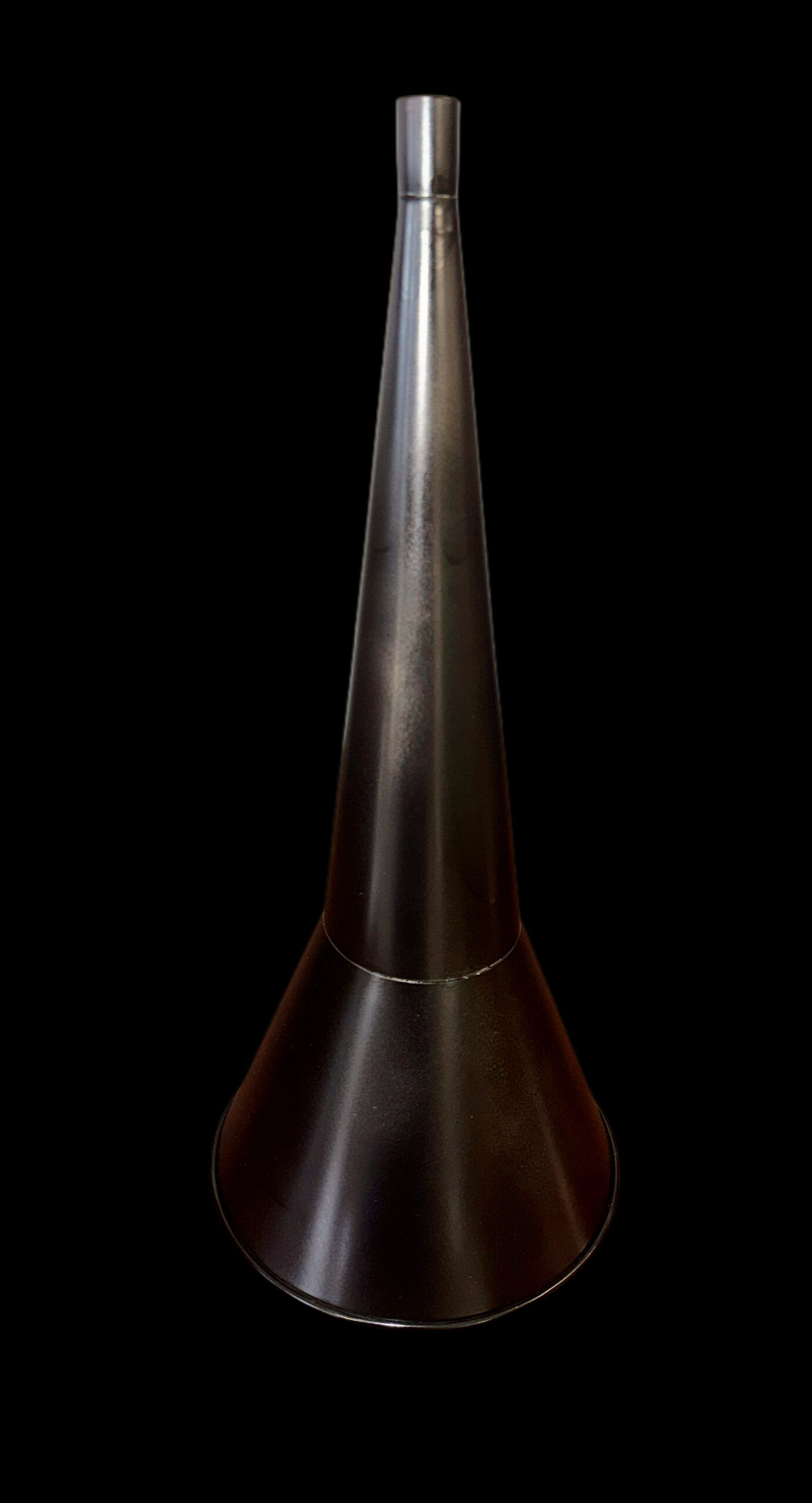 A rare opportunity to own a precision-made reproduction of the early black funnel horn—originally issued for Edison Standard, Home, and Fireside phonographs in the early 1900s. Measuring approximately 14½ inches long with a 6¼-inch bell diameter, this horn is crafted from tin and finished in matte black lacquer, just like the originals. This is for a SINGLE HORN. A pair can be purchased in the previous listing! Pictures show for a pair, This listing is for a single horn.