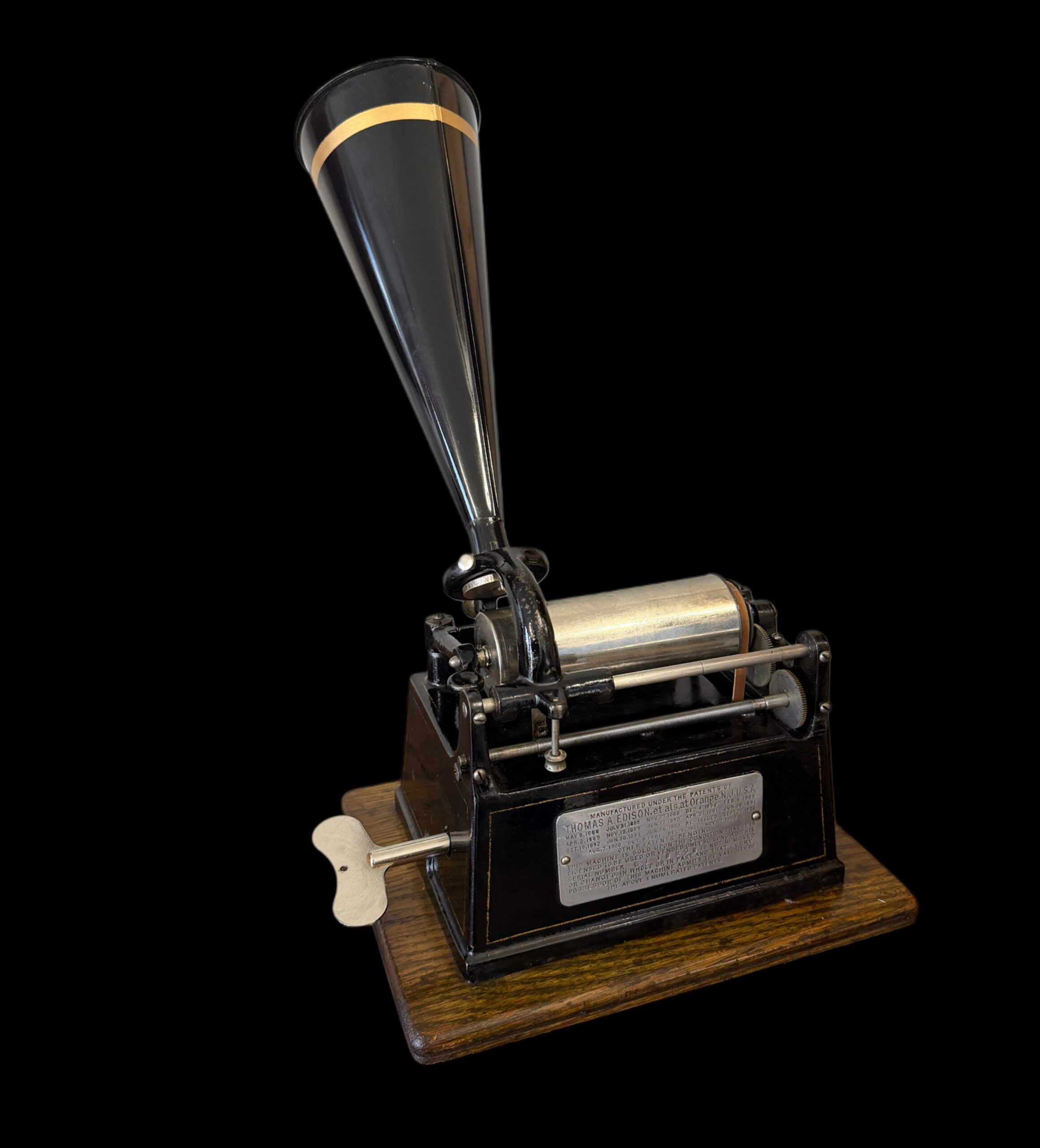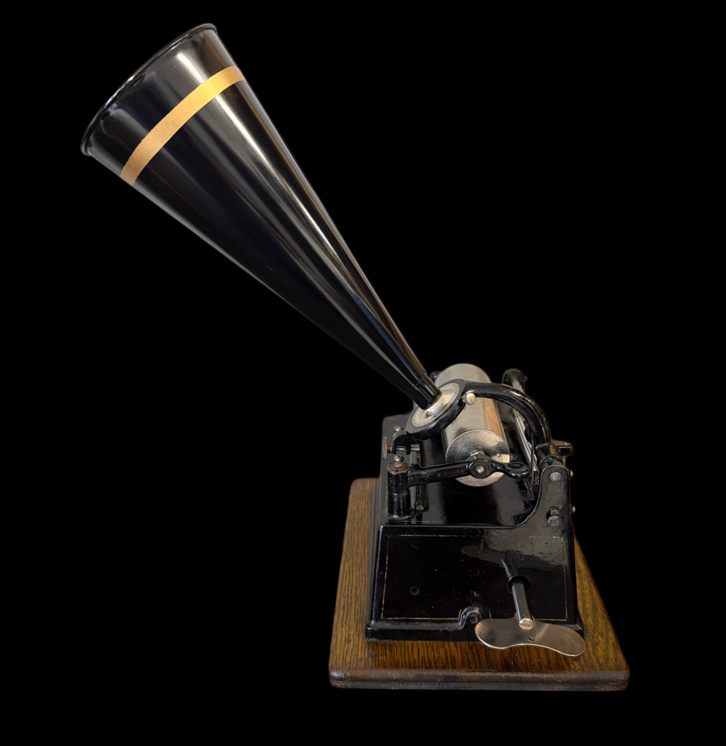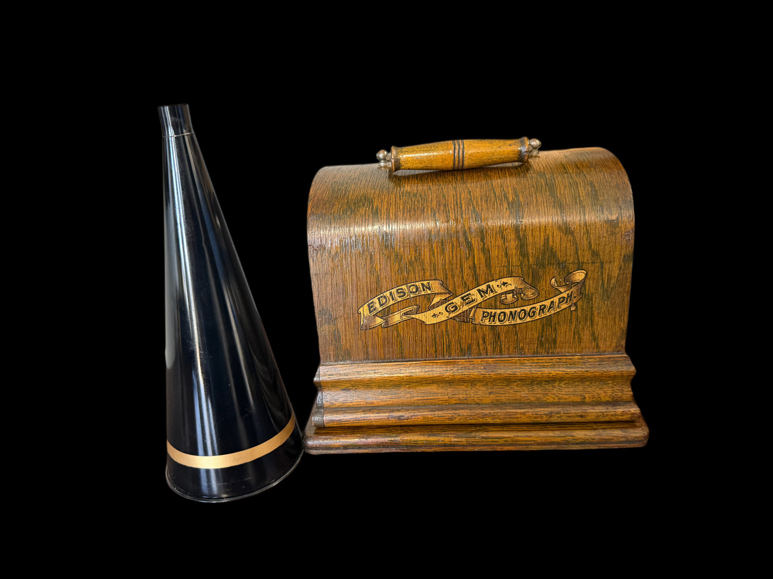 Accompanying the phonograph is the correct early funnel‑type horn, the proper match for this generation of GEM. Its flared profile not only enhances acoustic projection but also completes the authentic silhouette of an early‑1900s tabletop cylinder machine. Winding key included.